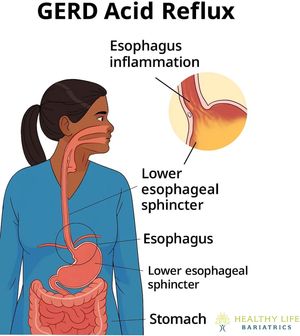 GERD occurs when the LES does not close properly, allowing stomach acid and digestive contents to reflux into the esophagus. Over time, chronic exposure can lead to inflammation (esophagitis), ulcers, scarring/stricture, and Barrett’s esophagus—a precancerous change of the esophageal lining.
