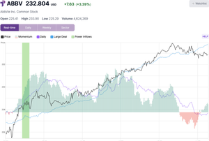 A key trading signal flashed for AbbVie shares at a price of $228.47, after which ABBV rose as much as 2.4% to an intraday high of $233.90.